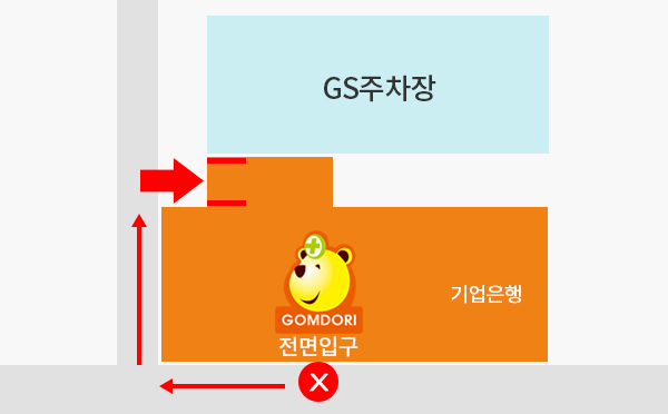 주차 후 건물 전면에 입구 이용이 불가하오니, 바로 주차장쪽 입구로 들어오시면 됩니다.
